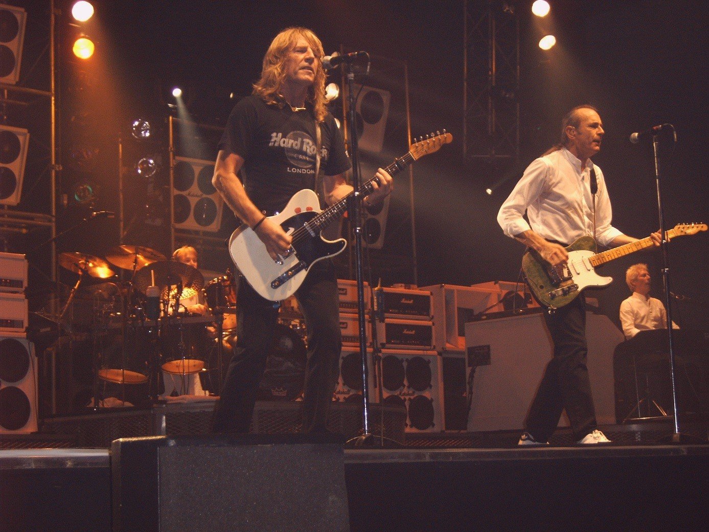Om gitaar te kunnen spelen in een duo zijn een aantal dingen belangrijk. De juiste akkoorden bijvoorbeeld. Het maakt niet uit zijn of het 3 of 13 zijn per liedje, als je ze maar pakt. Misschien nog wel belangrijker dan die akkoorden is het ritme, de groove. Die moet je vinden en vasthouden. En je vooral niet laten verleiden tot allerlei fratsen want dan onderbreek je de hartslag van de muziek. Status Quo, mijn favoriete bandje, kan dat erg goed. Rick Parfitt en Francis Rossi grooven wat af samen en ik word er nog elke dag vrolijk van. Zo wil ik ook spelen. Ooit kocht ik hun witte en groene Fender signature Telecasters.
